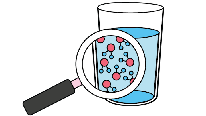 Alles um uns herum besteht aus kleineren Bestandteilen. Ein Glas Wasser zum Beispiel besteht aus Wassermolekülen (H₂O).